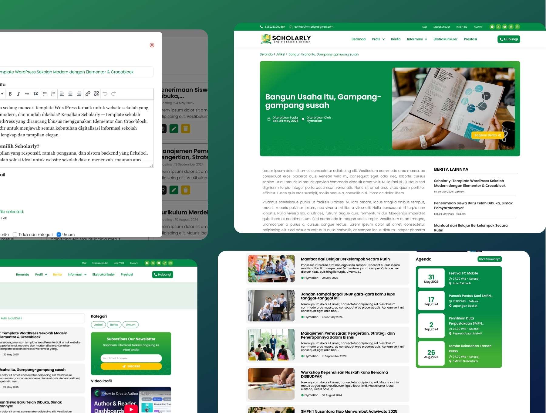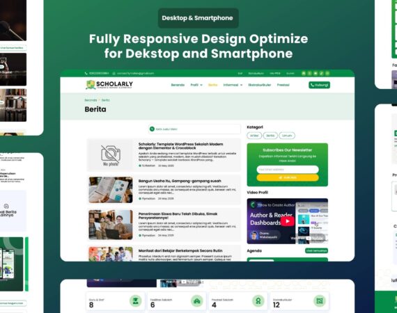 Apakah Anda sedang mencari template WordPress terbaik untuk website sekolah yang profesional, modern, dan mudah dikelola? Kenalkan Scholarly — template sekolah berbasis WordPress yang dirancang khusus menggunakan Elementor dan Crocoblock. Scholarly hadir untuk menjawab semua kebutuhan digitalisasi informasi sekolah dengan fitur lengkap dan tampilan elegan.