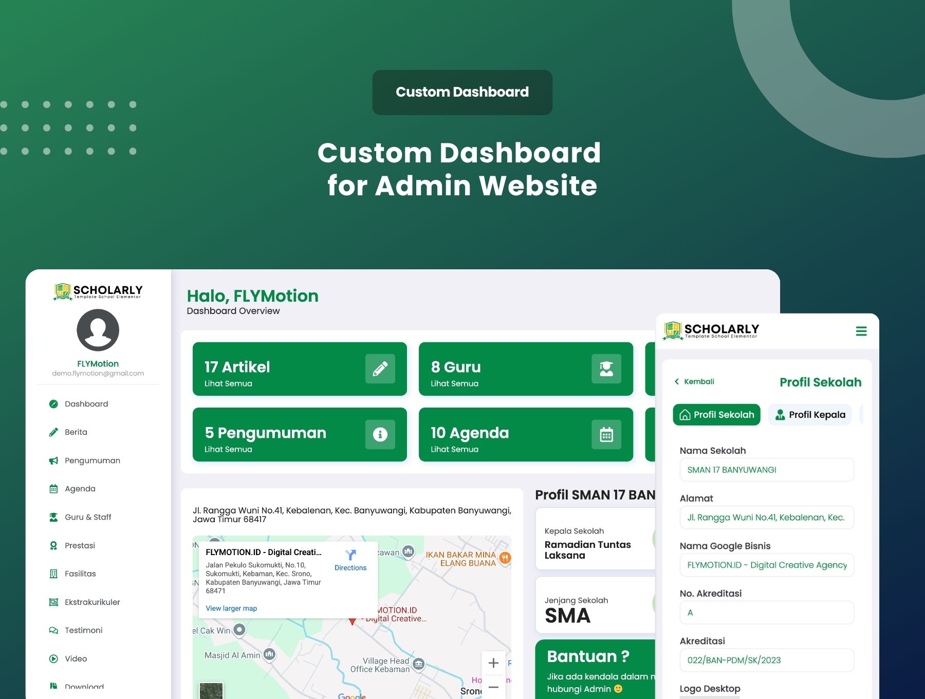 Dengan tampilan yang responsif, ramah pengguna, dan sistem backend yang fleksibel, Scholarly adalah solusi ideal untuk website sekolah dasar, menengah, maupun atas. Template ini tidak hanya menampilkan informasi penting secara menarik, tapi juga memberikan kontrol penuh kepada administrator sekolah melalui dashboard yang powerful.